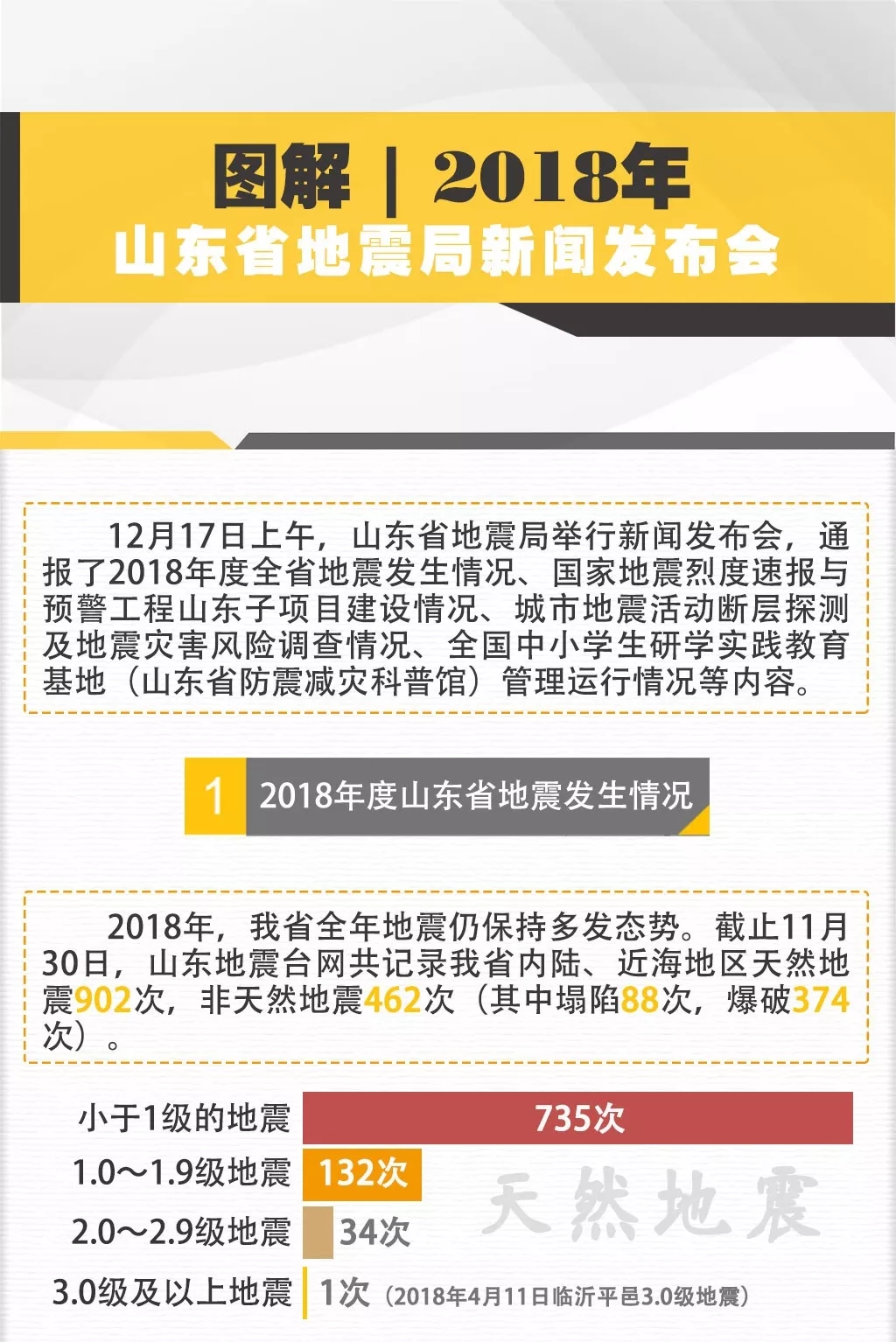 12月17日上午,山东省地震局举行新闻发布会,通报了2018年度全省地震发生情况、国家地震烈度速报与预警工程山东子项目建设情况、城市地震活动断层探测及地震灾害风险调查情况、全国中小学生研学实践教育基地(山东省防震减灾科普馆)管理运行情况等内容。山东省广播电视台、大众日报、应急管理报、齐鲁晚报等10余家媒体记者参加新闻发布会。