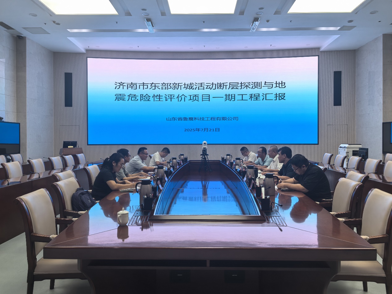 鲁震科技工程有限公司项目组工程技术人员汇报了济南市东部新城活动断层探测与地震危险性评价项目一期工程取得的成果,二期工程工作任务和计划。与会人员深入讨论了二期工程推进过程中的问题。冯志泽处长,刘训涛副主任分别对项目进度和质量发表了意见,就下一阶段工作提出了明确要求。